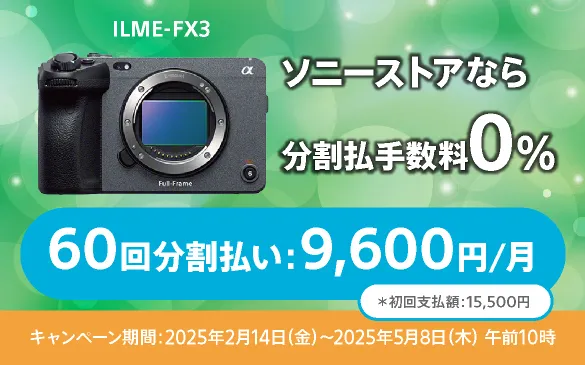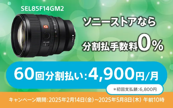 本日2月14日(金)10時~5月8日(木)10時までの期間限定で、対象のα、レンズが、60回分割払い手数料無料で買える!毎度好評で、すっかり恒例となったキャンペーンだ。