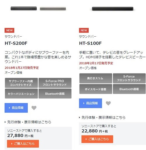 外付ウーファーなしのサウンドバー「HT-S200F」「HT-S100F」発表!