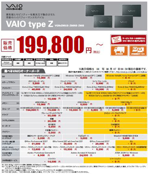 さて、今回のVAIO typeZ。OS3種類、液晶2種類、ストレージ6種類!