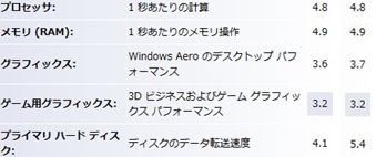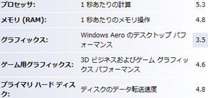 計測は、Vista標準機能の、「Windowsエクスペリエンスインデックス」