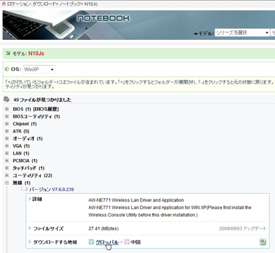 1.ASUSのサイトで、、、「N10Jc」で、検索する。。。これがポイント