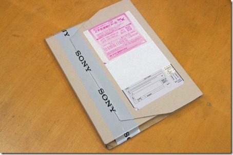 色合いは、クリーム色。ソニスタの黒箱のように箱自体にはなんの印刷もなく、封印のグレーの粘着テープに、「SONY」のロゴが入っているだけ・・・という、非常にシンプルデザイン。