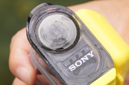 川へ行ったつもりが、、、インターバル撮影モード(一定時間間隔で、静止画を撮影する)になってて; あわてて、ケースを開けて、モードを動画撮影に変えたが・・・。もう、だめだよね。水につけて数分で、カメラ内は、、、曇りまくり;