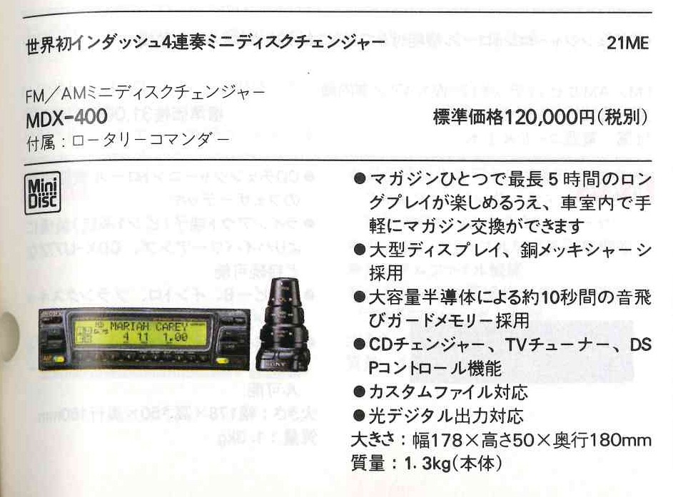 やはり、MD化といっても、CDは当時の主力音楽ソース。CDチェンジャーは必須。旧型からの買い換えだったが、音飛びが皆無になったのに衝撃を受けたものだ。しかし、、、たけぇな;