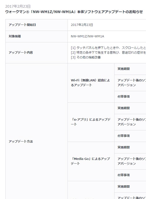 ウォークマンA30シリーズ、WM1シリーズ、アップデート。「タッチ反応速度が向上、音飛び症状を改善」