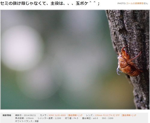 ↑これら3つの作例のうち、、、セミの抜け殻以外の作例は、動く被写体が主役になってて、とにかく、撮影が大変だったことを記憶している。チョウもハチも、どこにとまるかわからないから、置きピンしづらいし。シャッター押す瞬間は、距離ブレによるピンボケを防ぐために、息止めてるし。