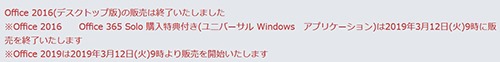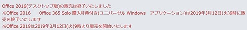 ※Office 2016 Office 365 Solo 購入特典付き(ユニバーサル Windows アプリケーション)は2019年3月12日(火)9時に販売を終了いたします