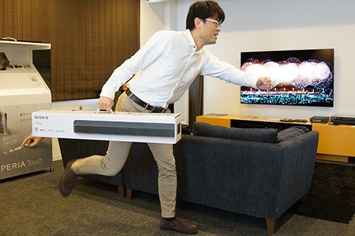 今月発売の、一本タイプのサウンドバー「HT-X8500」。当店店頭に常設展示してます。