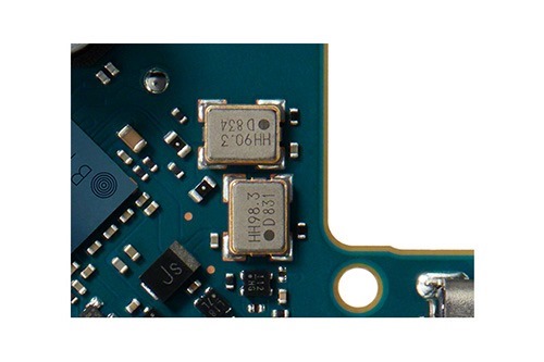 ↑小型低位相ノイズ水晶発振器×2個(44.1kHz系、48kHz系)。WM1シリーズのものより小型化。内部ICは同一のもの。