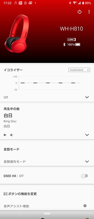 他にも、イコライザー操作(LDAC接続時は不可。接続優先モードに切り替える必要あり)や、DSEE HXのOFF or AUTO、C(カスタム)ボタンの割り当て変更が可能。
