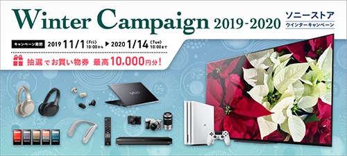ソニーストア全店(銀座、札幌、名古屋、大阪、福岡天神、オンライン)では、【ウインターキャンペーン 2019-2020】を開催中。総勢5,000名にお買い物券があたる抽選会、お得なキャンペーン、イベントや期間限定商品をご用意。