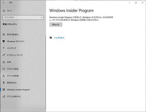 ↑Windows10の設定で、「Windows Insider Program」を開始。Microsoftアカウントでログインが必須。