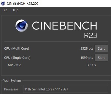 新SX14(Core i7-1195G7)を、CINEBENCH(R23)で、測定してみた。