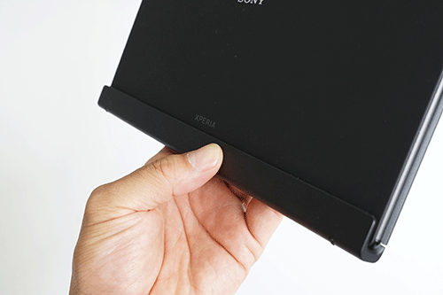 Xperia Z2 Tabletは、表面がマットで、ややツルツル。