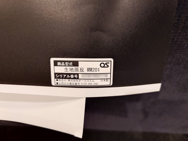 ↑その裏面には、メーカーラベルがあって、シリアル番号やサポート電話番号までも記載されてて、安心感がはんぱない。「生地原反」っていうのも、なかなか生々しくてよろしい^^