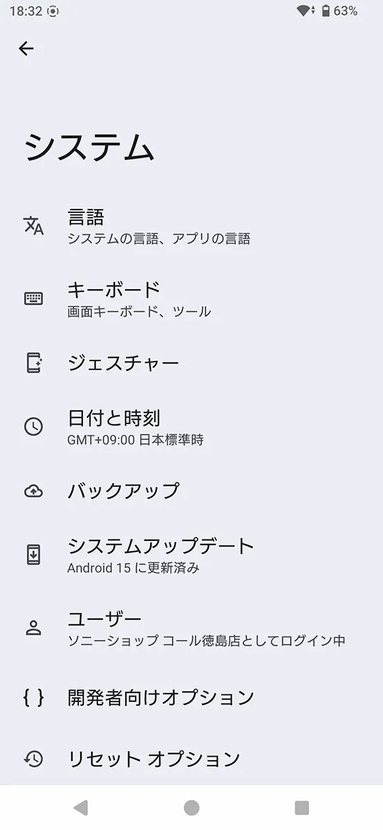 ↑設定→システム。通常は表示されてない「開発者向けオプション」が、表示されるようになった。