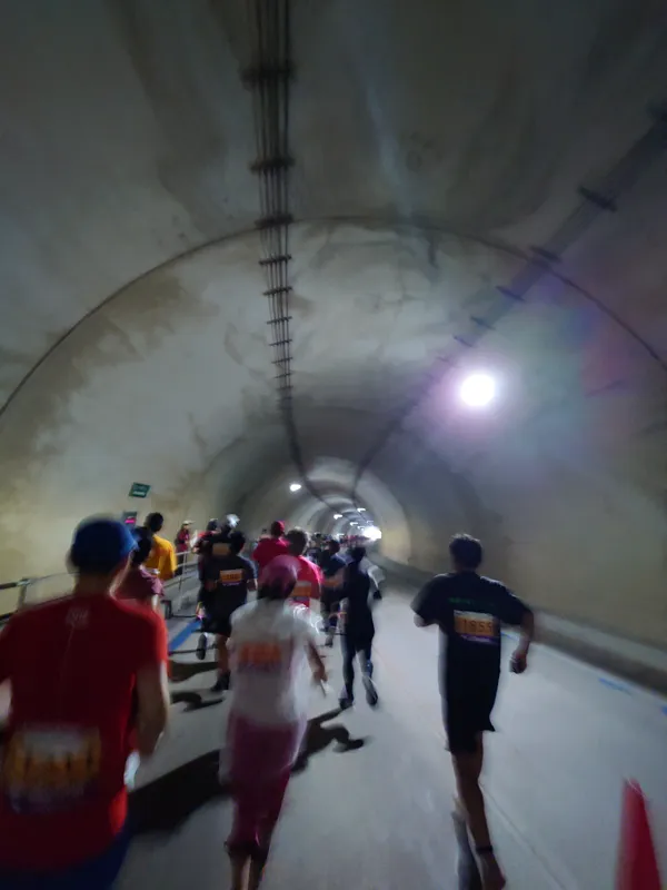 ↑大会で、トンネル内を走ったのもはじめて。大会で走るには、かなり暗かった(笑)それでも、Xperia 1 Ⅶの性能のおかげで、それなりに撮れてるね。もちろん、走りながら撮ってる。