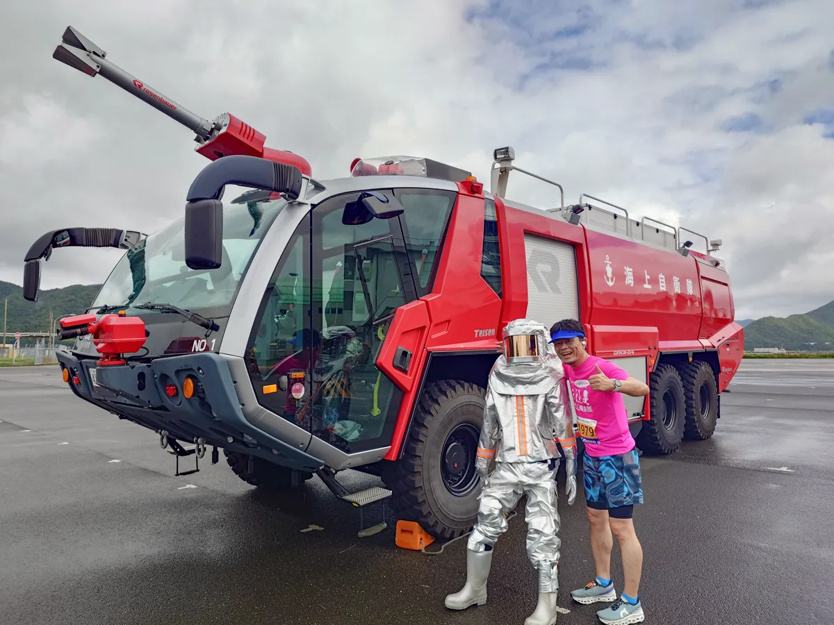 これ、消防車的なやつか?なんかメカメカしくてイイ!で、宇宙服みたいなのは防火服的なやつ?