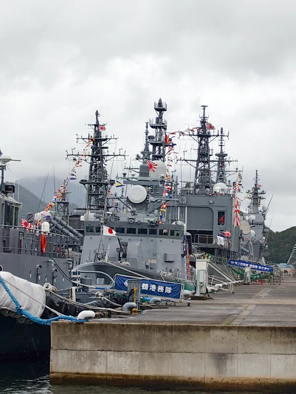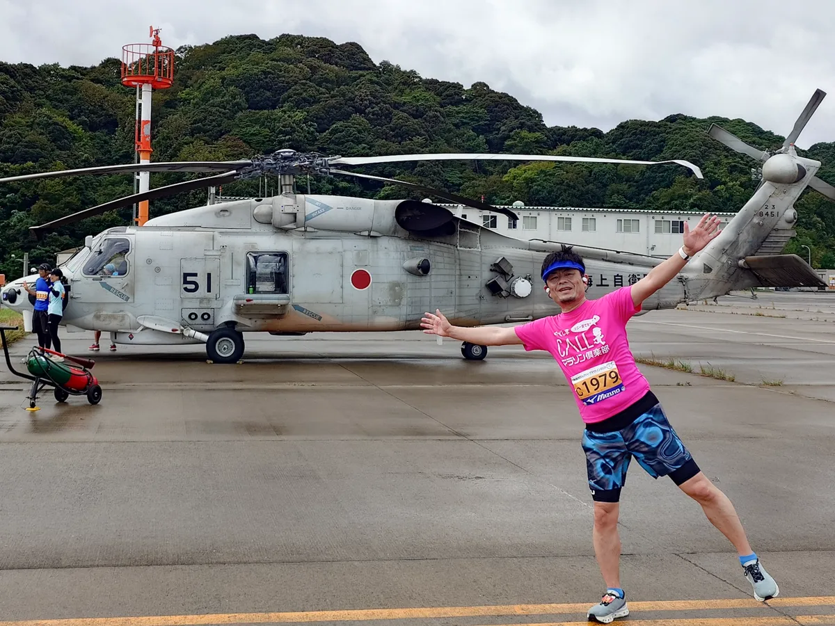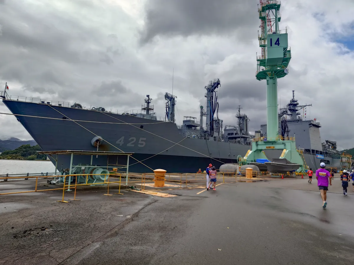 スタート地点には、知識ないからよー知らんけど、自衛隊の艦が、たくさん停泊していて、、、もう、よくわからんくせに、スタート前からテンション爆上がり。