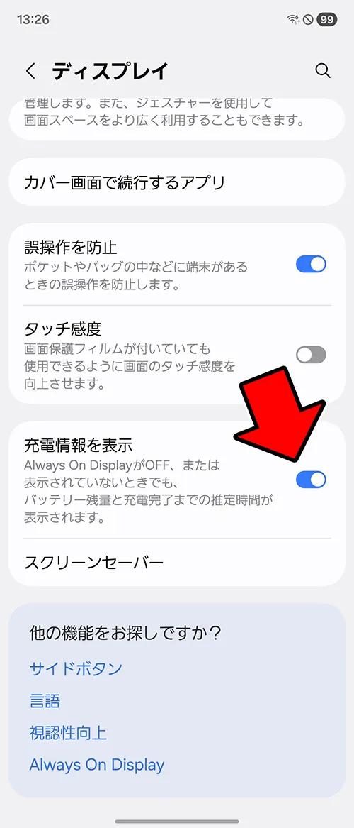 充電ランプに変わる、ディスプレイ表示
