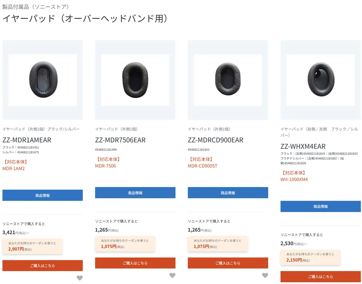 ソニーストア 「製品付属品」(旧 部品)の、販売ラインナップが増えたよ。