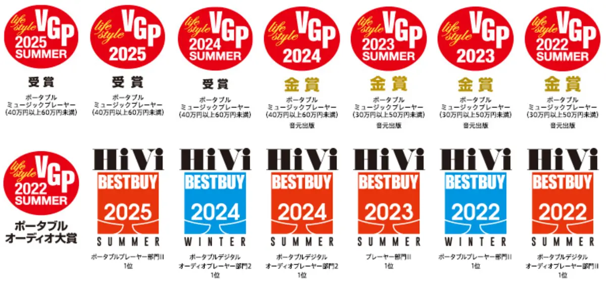 発売から3年半以上が過ぎたが、今年も数々の受賞で、↑受賞バッジが大変なことになっている、フラッグシップウォークマン「NW-WM1ZM2」。