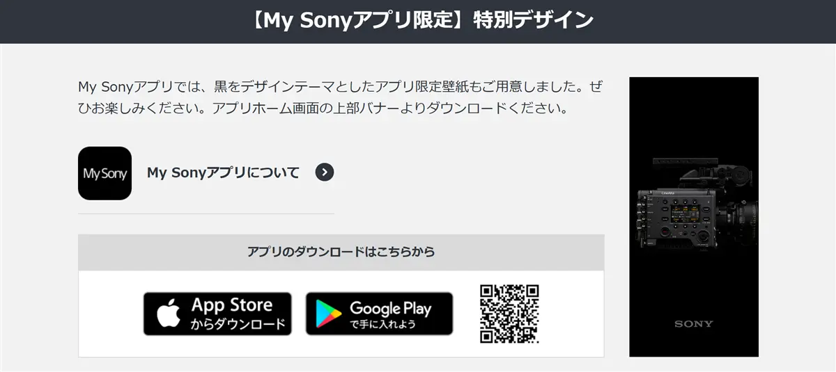 ↑また、「My Sonyアプリ限定」特別デザインも、用意されている。「My Sony アプリ」必須なので、インストールしよー。