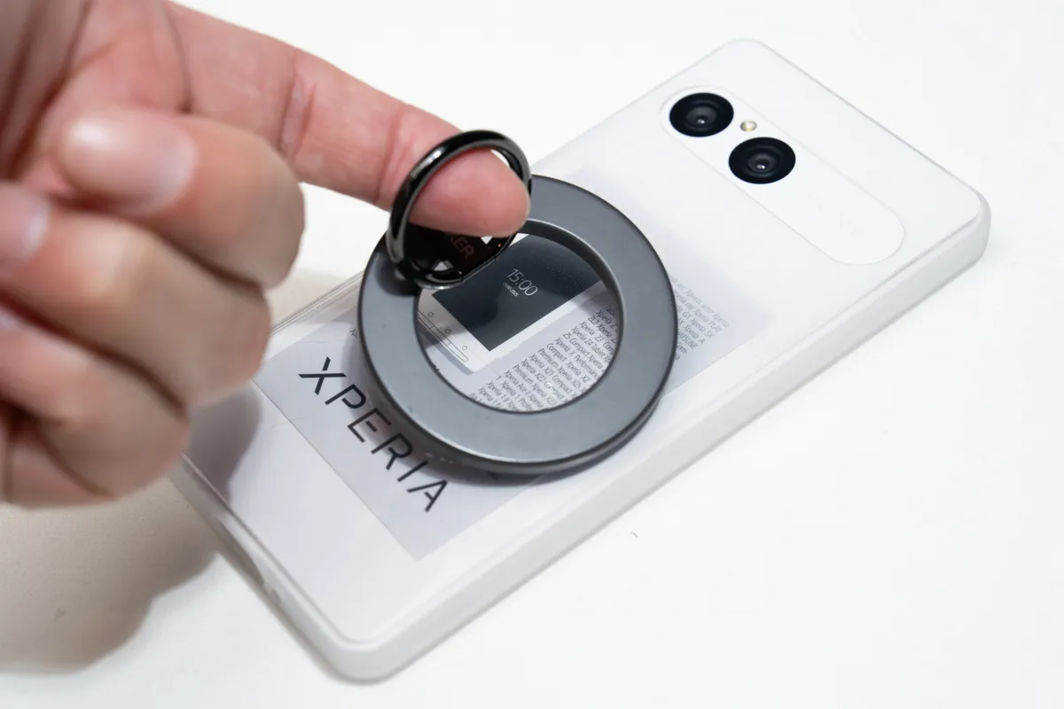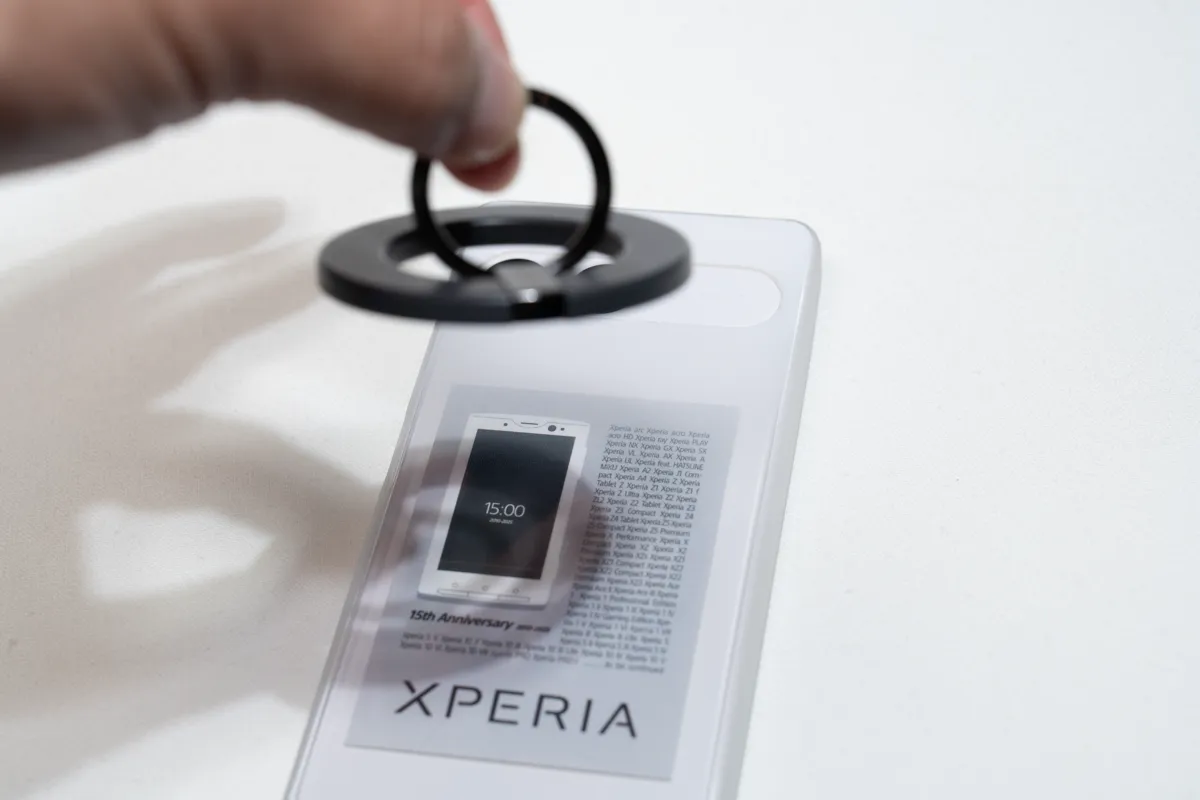 ↑残念ながら、ワイヤレス充電「Qi」には非対応のXperia 10 Ⅶなので、リング位置は、適当でOK。カバー越しに、マグネット吸着させるので、はずれる心配もないため、貼り付けすらせず、置いただけ。