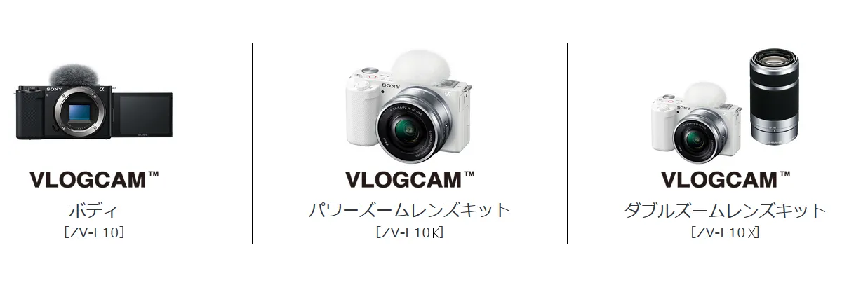 VLOGCAMボディ(ZV-E10)、VLOGCAMパワーズームレンズキット(ZV-E10L)、VLOGCAMダブルズームレンズキット(ZV-E10Y):5,000円