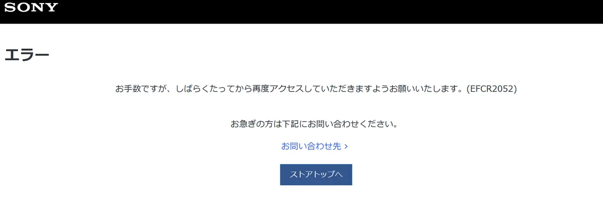 が、、、購入手続きをはじめてみると、↑このアリサマ。ほんと、ソニーストアのサーバーは弱いというかなんというか。