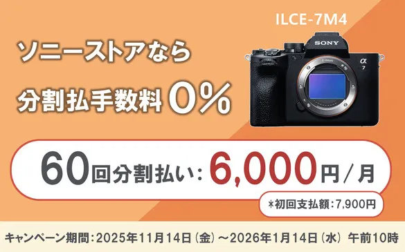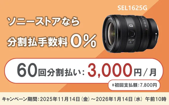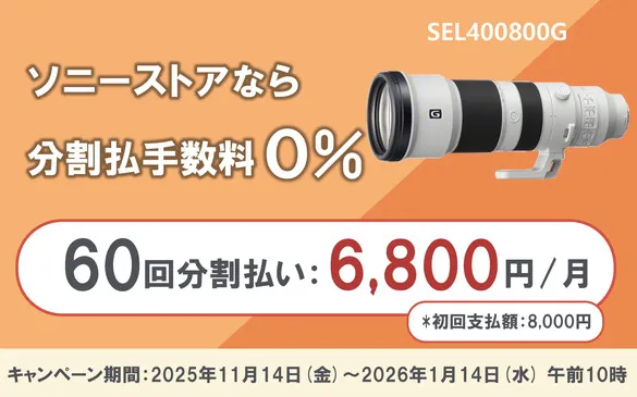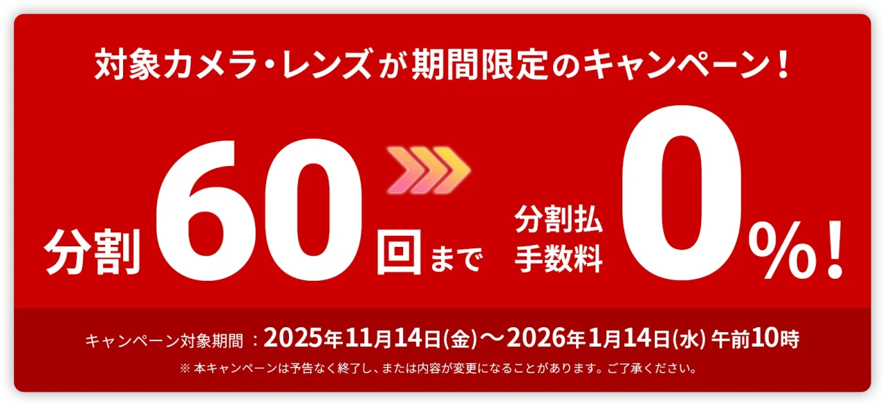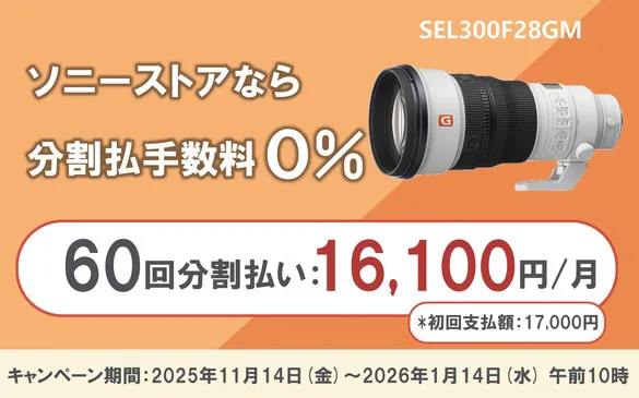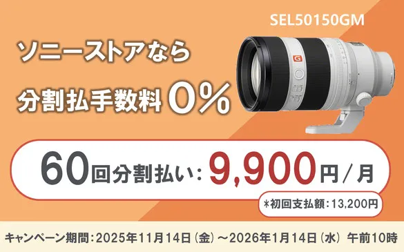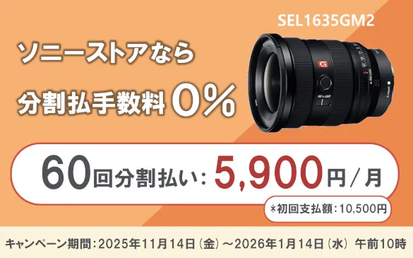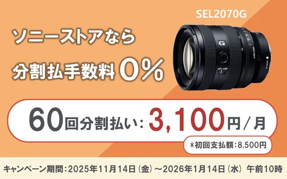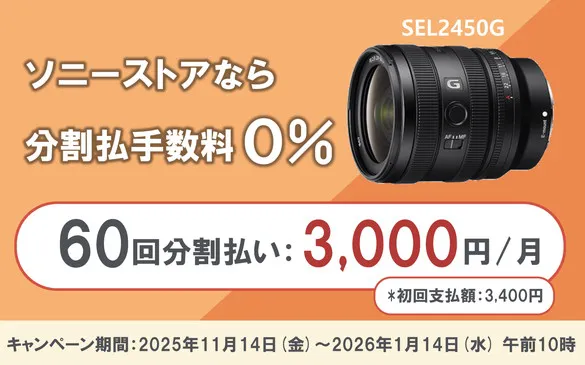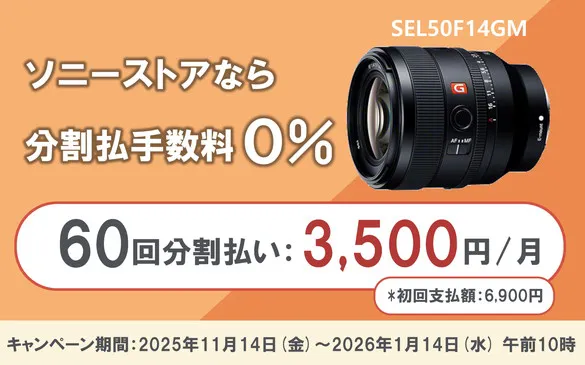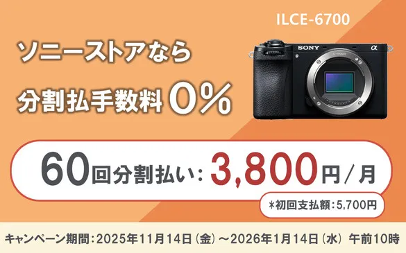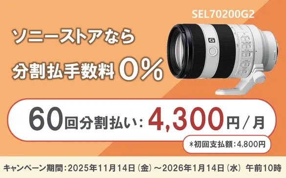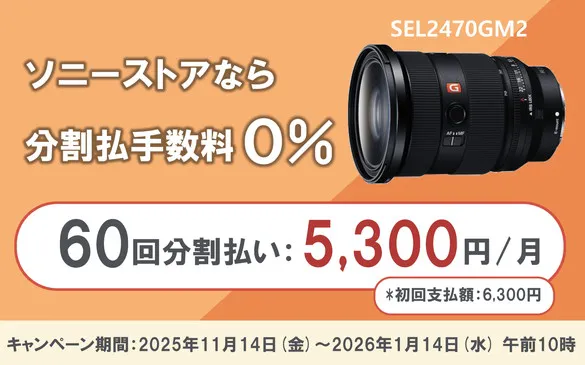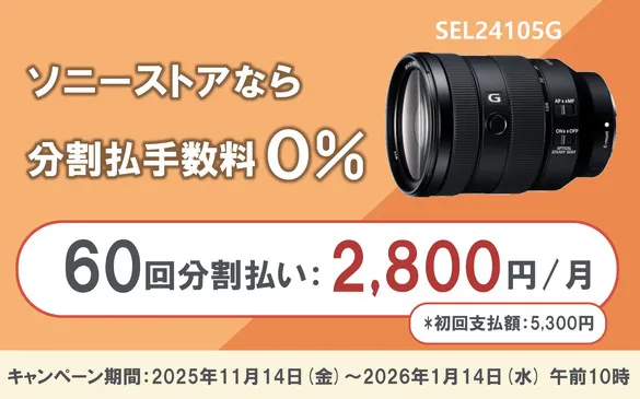 本日11月14日(金)10時~2026年1月14日(水)10時までの期間限定で、対象のα、レンズが、「60回分割払い手数料無料」で買える!