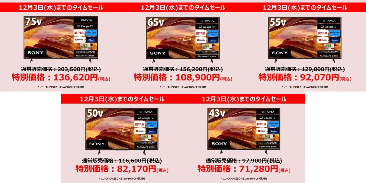 <タイムセール 12月3日(水)まで>BRAVIA X75WLシリーズ全サイズが、過去最安値タイ!クーポンでさらに安く!