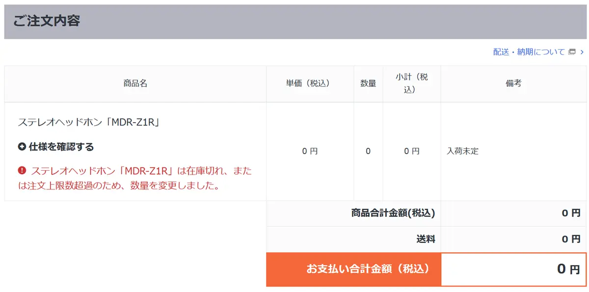 さて、ソニーストアの納期状況はというと、、、ついに、「入荷待ち」ステータスになってしまった。