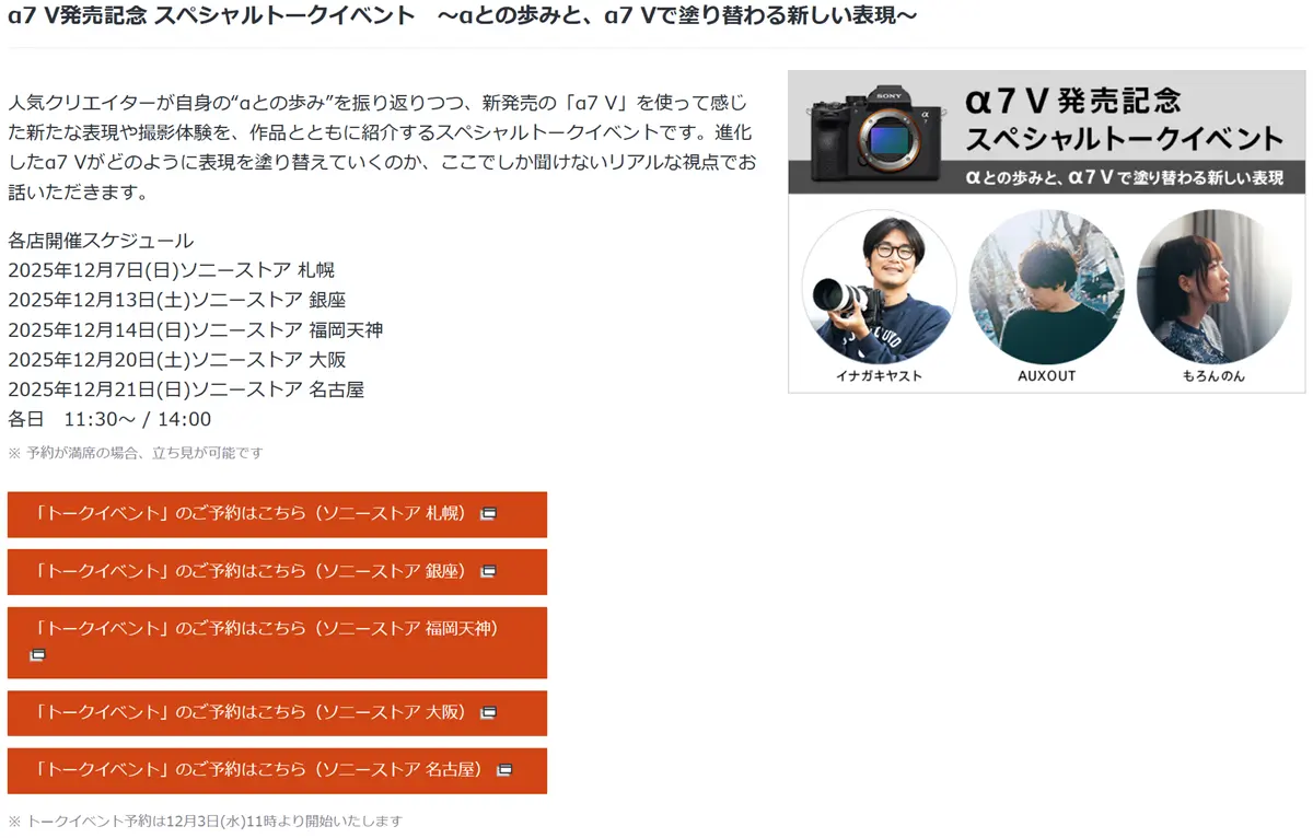 α7Ⅴ、先行体験&スペシャルトークイベントの詳細や予約はこちら