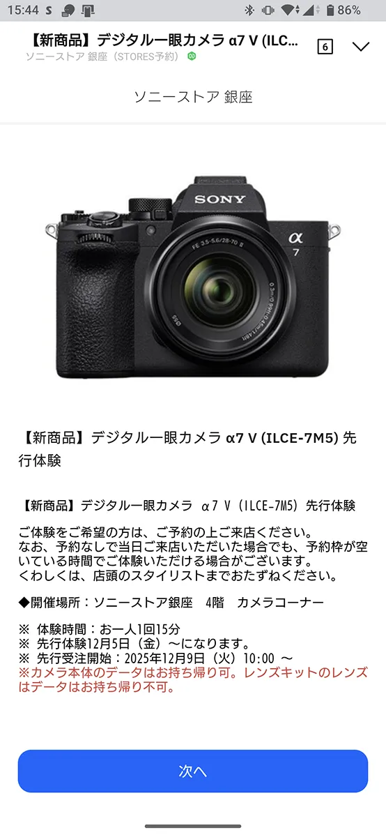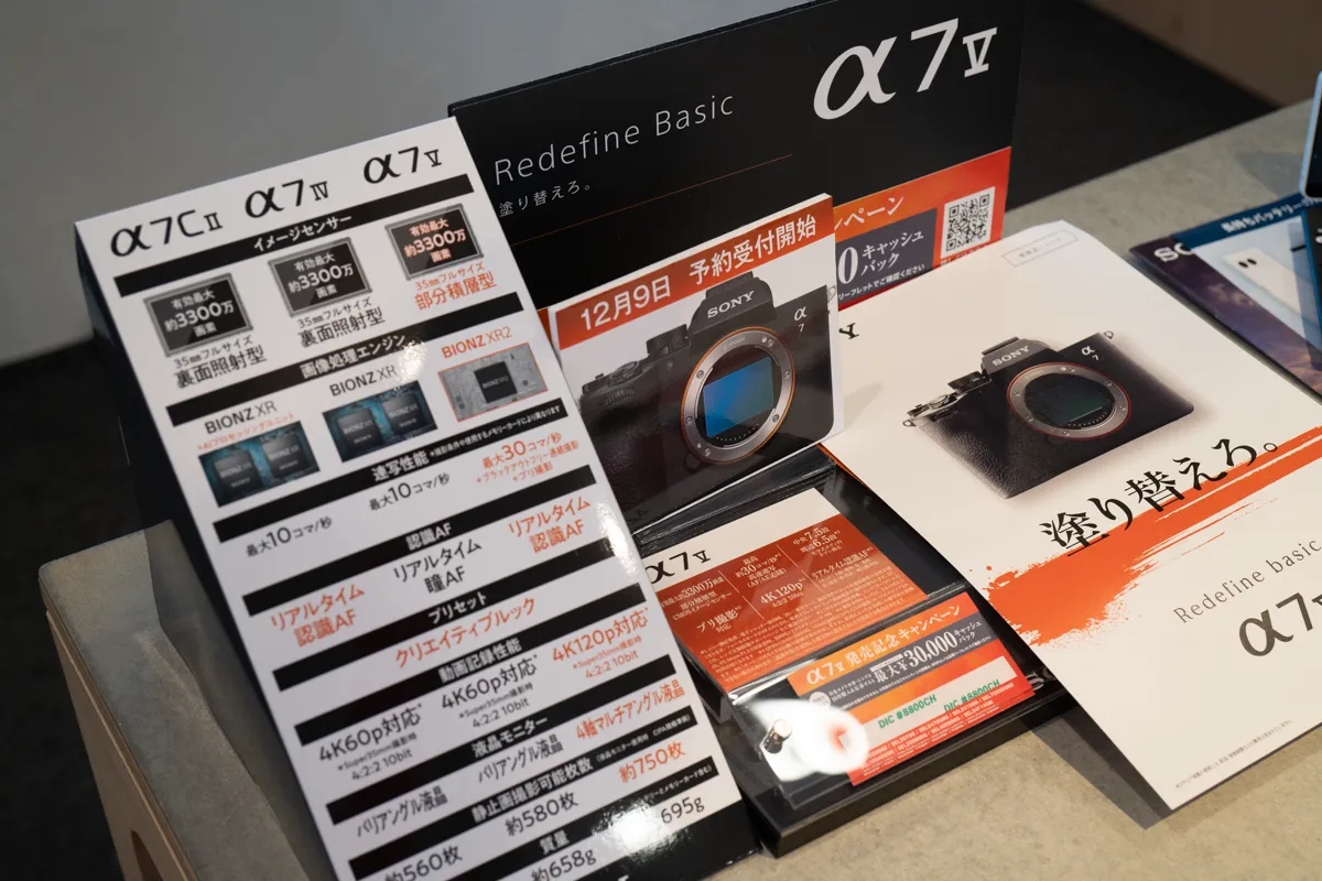 「α7Ⅴ」、明日12月5日(金)から、ソニーストア各店舗にて先行展示開始。予約なしでは、ちょっと厳しそう。