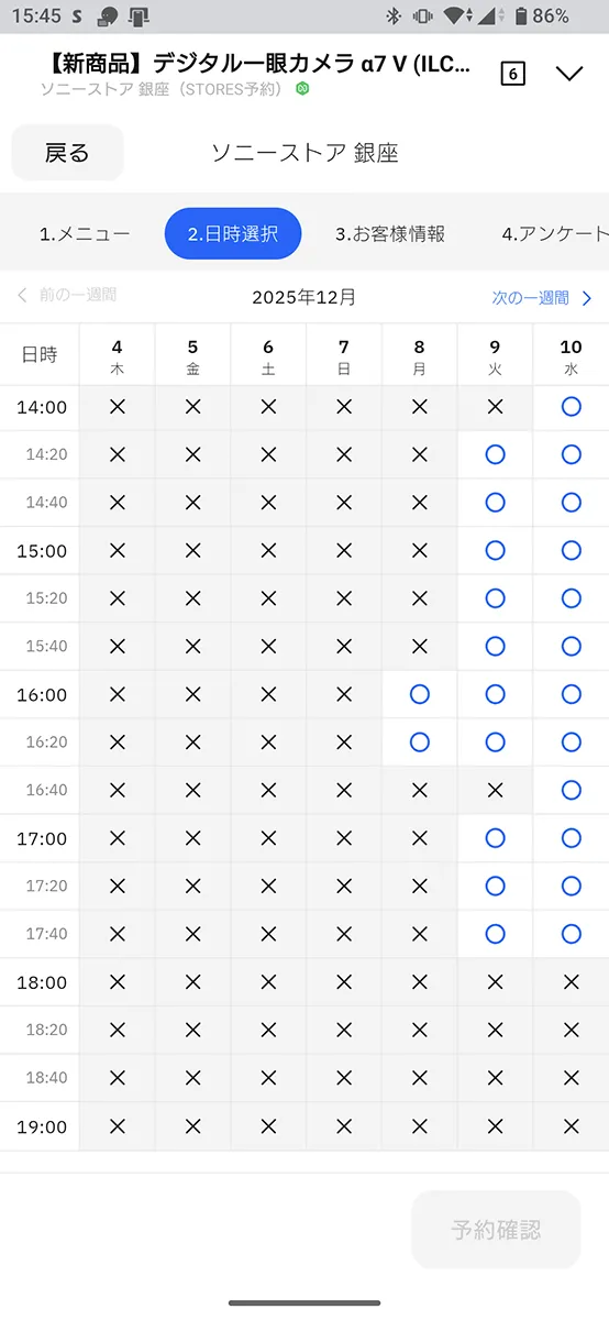 15時40分頃、確認したところ、ソニーストア銀座の予約状況は↑このとおり。す、すごいね。