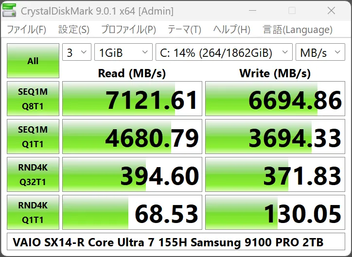 VAIO Z様(2021年モデル)を買い替えたよ、VAIO SX14-R(2024年モデル) その3 「ベンチマーク」