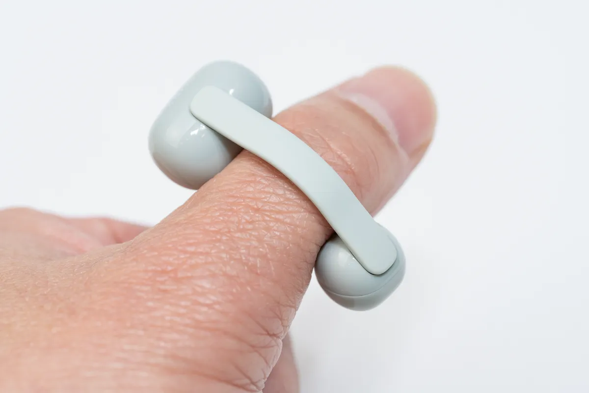 ↑イヤーカフ型だけに、耳をはさむ形状。