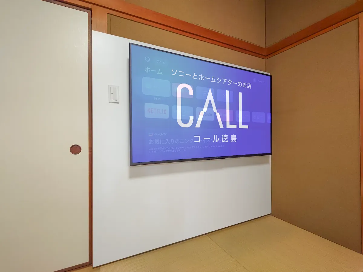 特注壁製作期間約1週間。現地取り付け作業1時間半。テレビ壁掛け工事1時間。