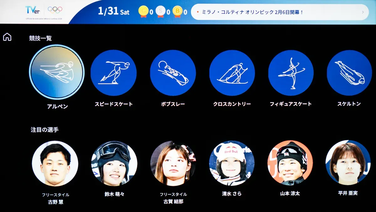 2月6日(金)開会の「ミラノ・コルティナオリンピック」を、TVerにて、ほぼ全競技(NHK地デジ放送競技の一部を除く)の無料配信が決定。冬季大会としてはTVer単独で初だそうだ。