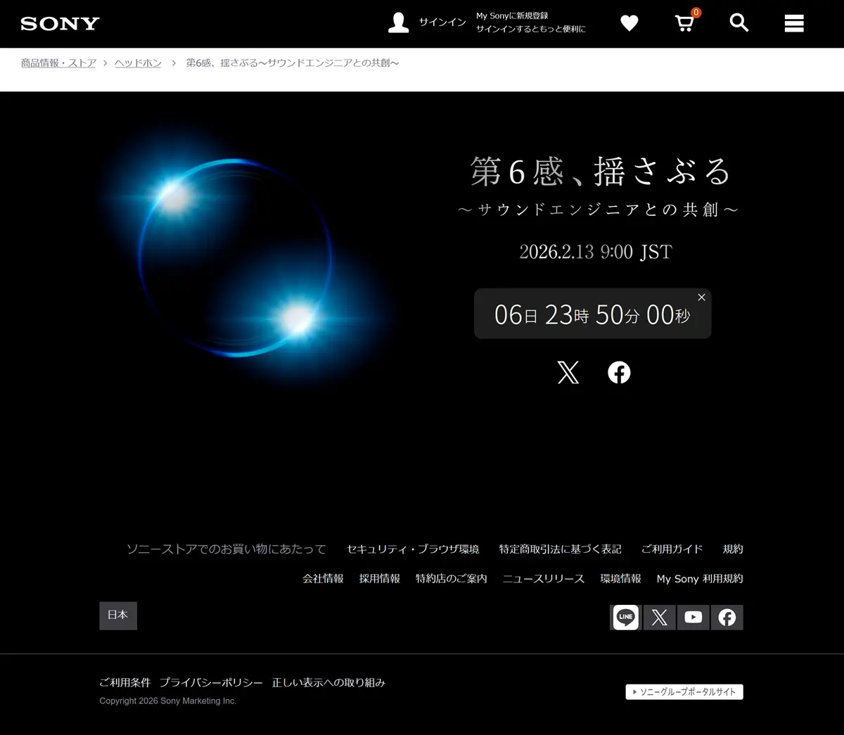 <ソニー公式トップにティザー>日本時間2026.2.13 9:00「第6感、揺さぶる~サウンドエンジニアとの共創」