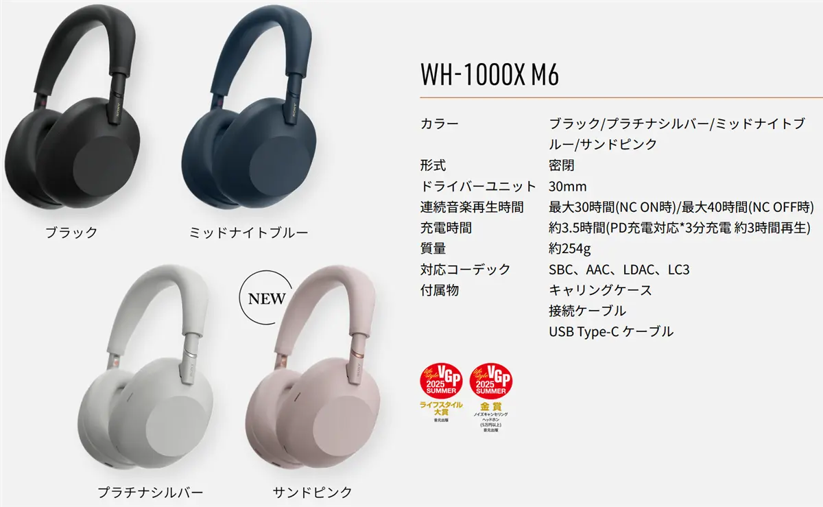 <新色>フラッグシップノイキャンヘッドホン「WH-1000XM6」 サンドピンク発売