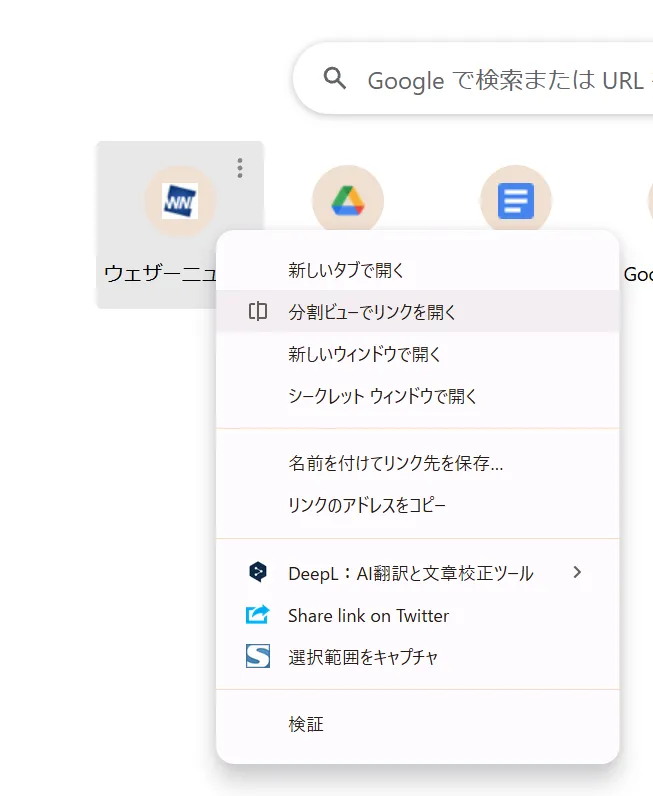 ページ内のリンクを、右クリックし、「分割ビュー」を選択。同一タブ内で、自由に左右に動かすことができる、縦の仕切り線を堺に、左右に異なるページを同時表示できる!!