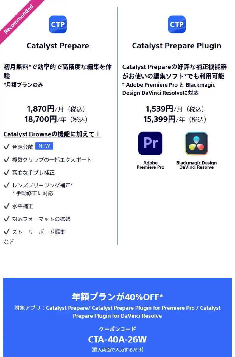 >Catalyst Prepare / Prepare Plugin(クーポンコード CTA-40A-26W を購入画面で入力)
