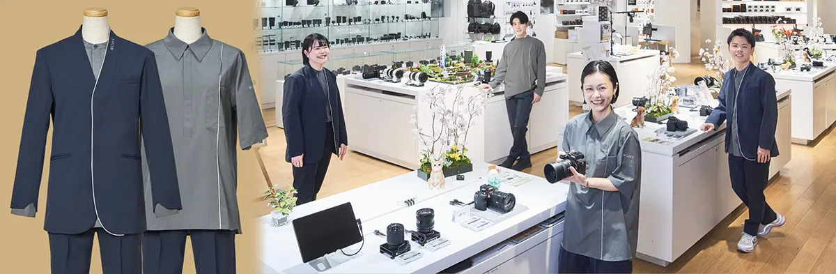 ソニーストアでは、2026年4月に制服をリニューアルしました。そして、今回のリニューアルを機に、これまで多くのお客様との時間をともにしてきた制服に感謝を込め、素材の個性を活かしたオリジナルアイテムに生まれ変わります。制服はかたちを変えて、あなたの日常の風景の一部として静かに役割を引き継ぎます。