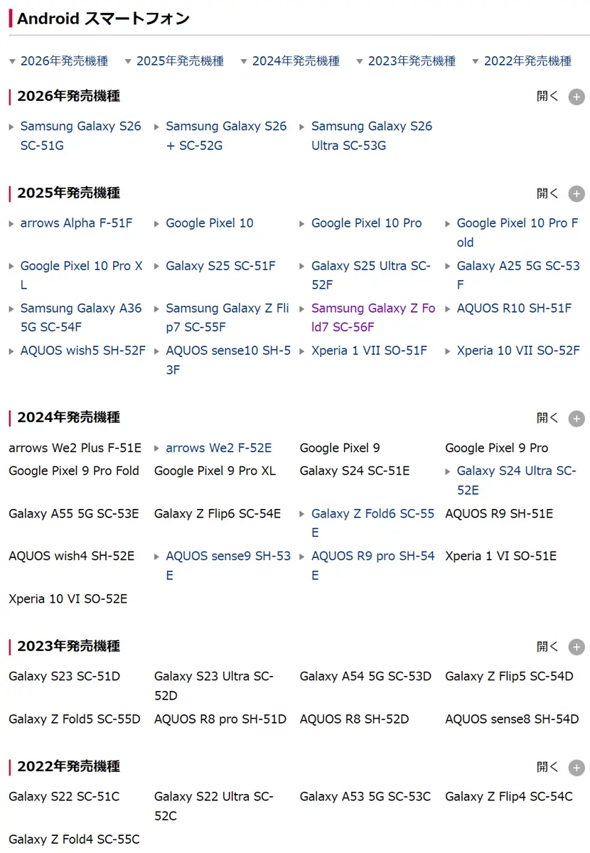 ということで、(iPhoneはとりあえず置いておいて)、ドコモサイトより、対応Android端末をまとめみた。
