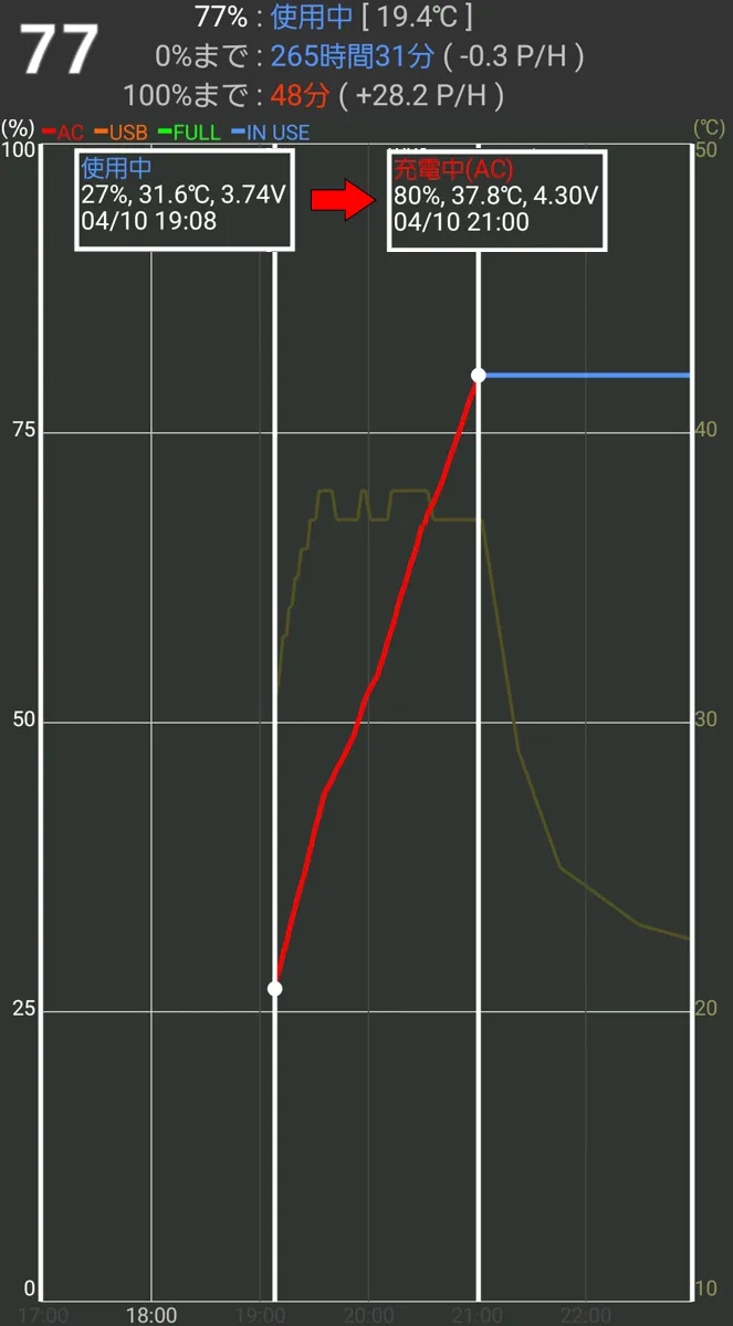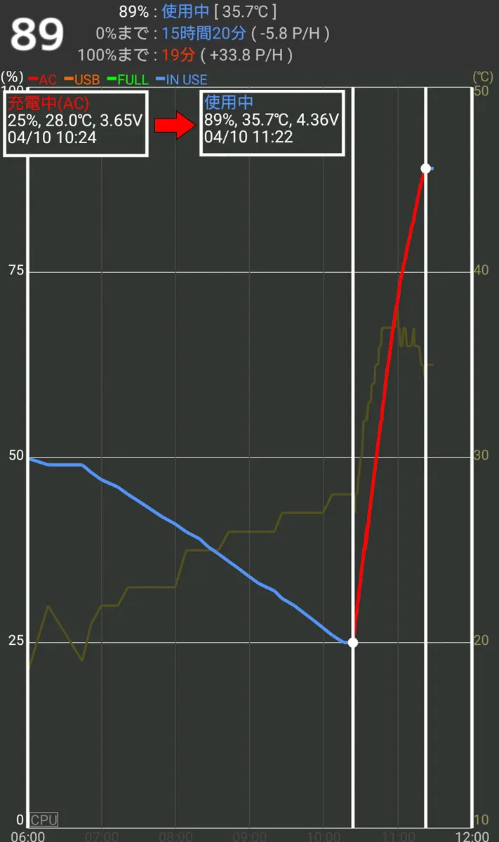 ずっと、画面ガン見してるわけにいかないから、定番アプリ「Battery Mix」先生に、充電状況をリアルタイム監視してもらった。