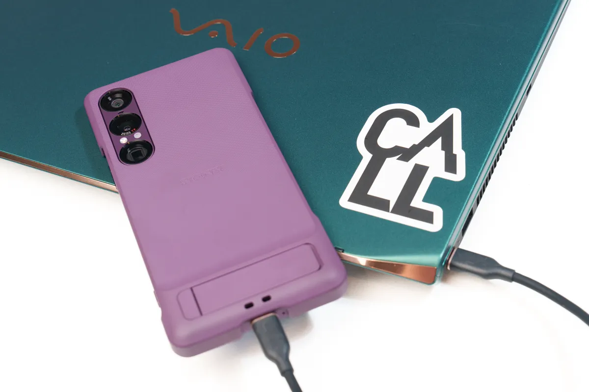 ↑VAIOで、Xperiaを充電する。これも、規制外。VAIOは、モバイルバッテリーではない。モバイルパソコンだから。