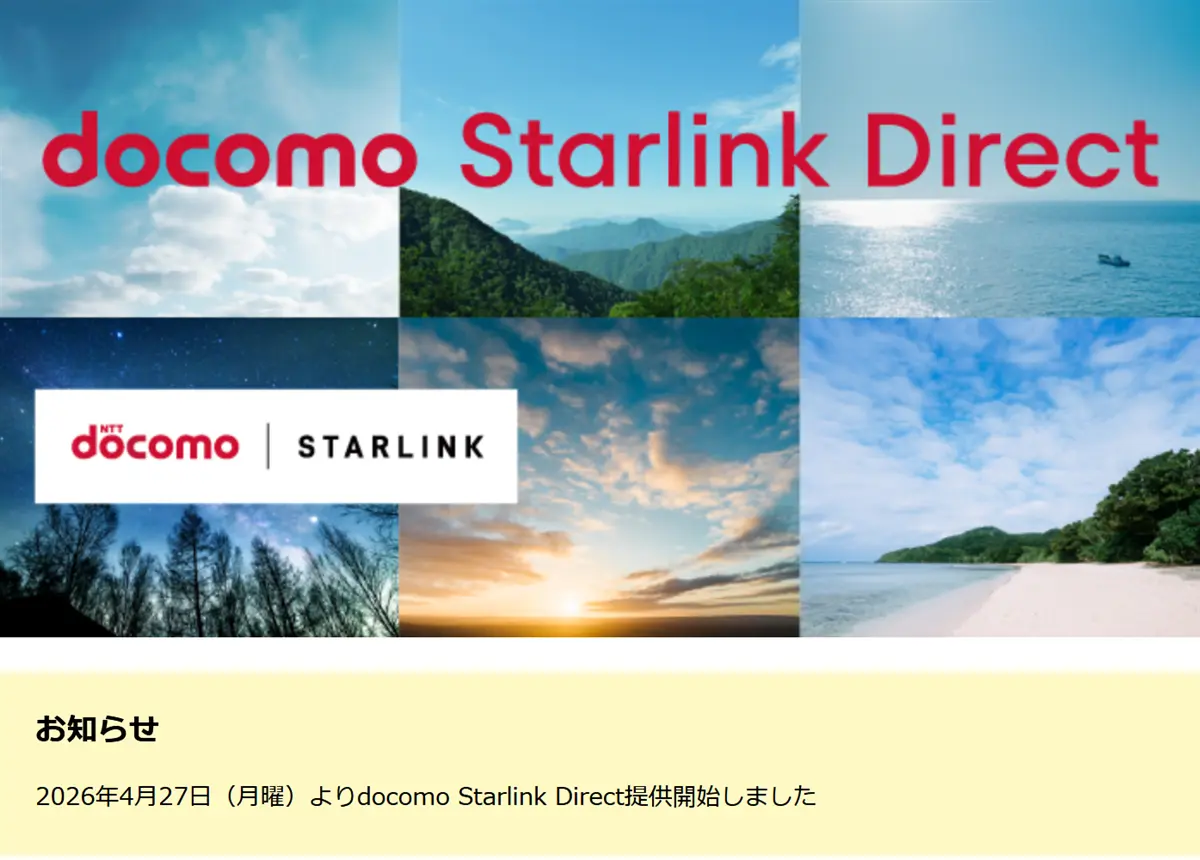 本日4月27日(月)よりサービスインの「docomo Starlink Direct」。